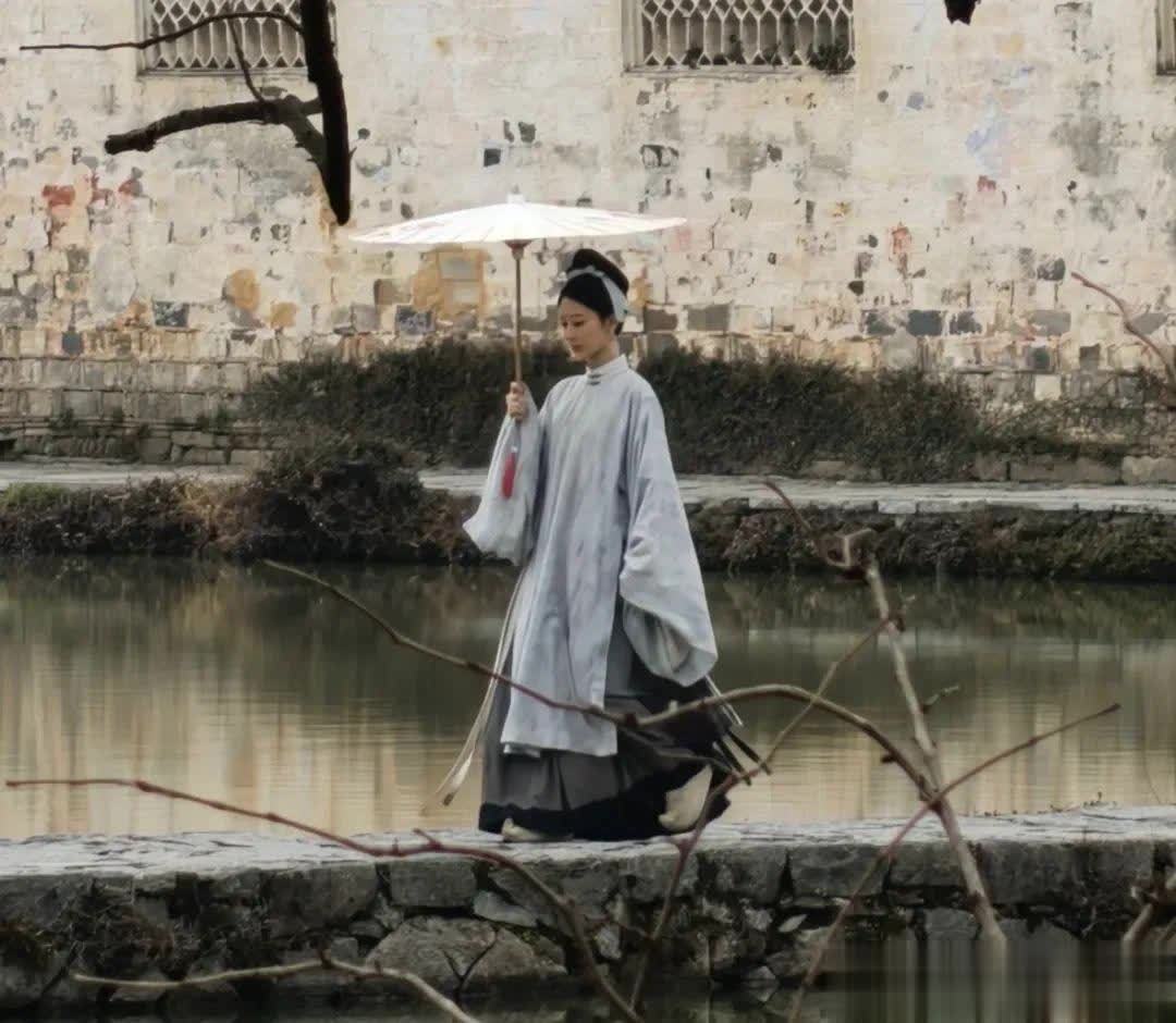 这张杨紫撑伞独行的场景,看得出来杨紫对角色的用心,人物妆造和景融合在一起一秒穿越明朝中期普通百姓的生活场景。